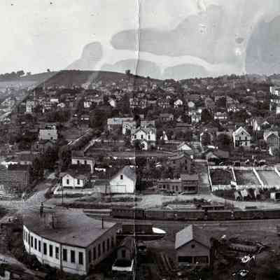 Woodcut of downtown Waynesburg, Greene County, Pennsylvania (1843)