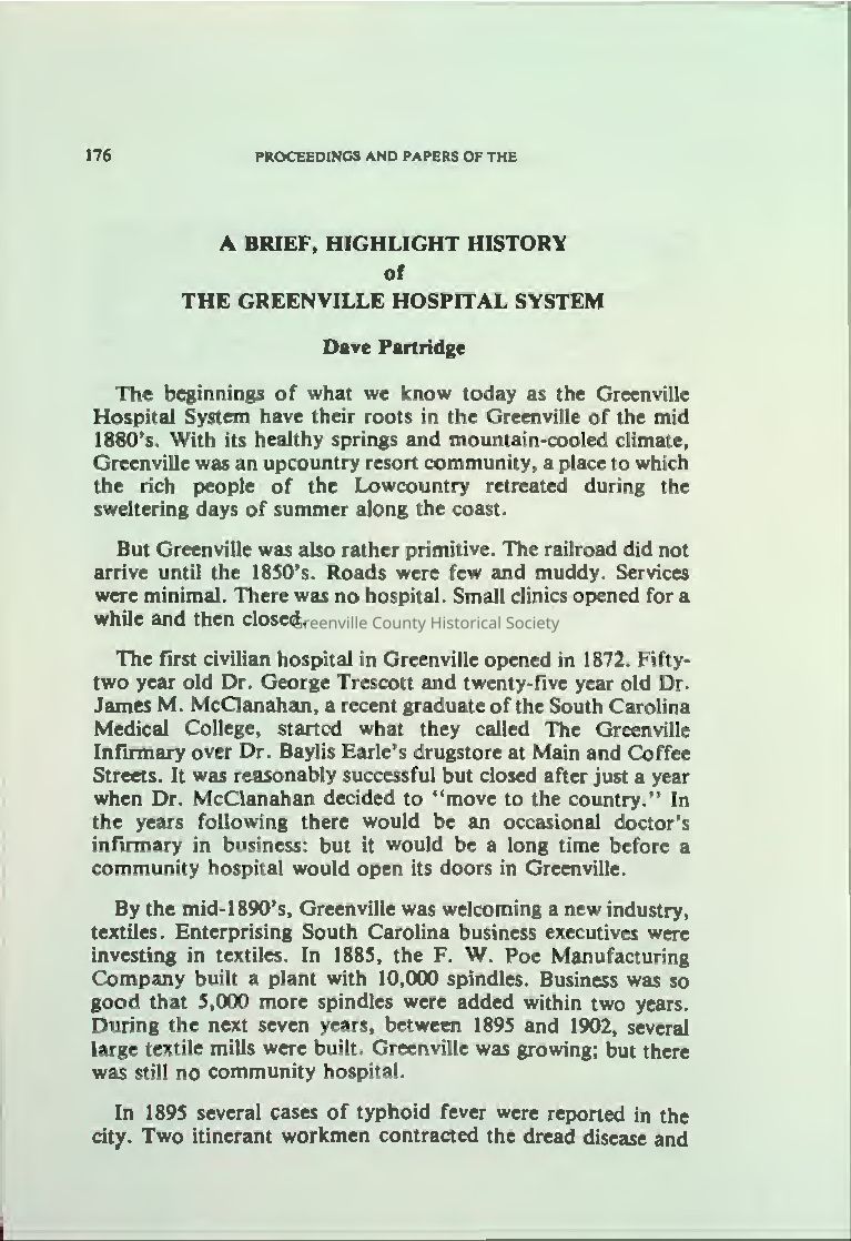 A Brief Highlight History of the Greenville Hospital SystemEntry/Object ID