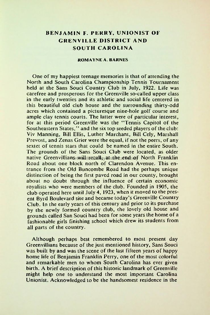 Benjamin E. Perry, Unionist of Greenville District and South Carolina (missing pages)Entry/Object ID