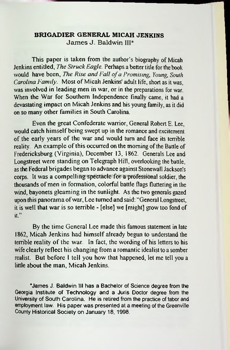 Brig. Gen. Micah Jenkins: The Struck EagleEntry/Object ID