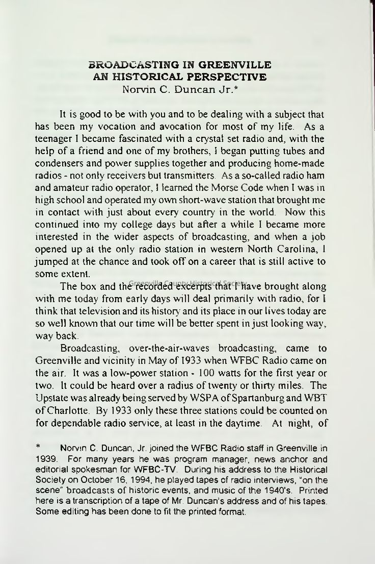 Broadcasting in Greenville: An Historical PerspectiveEntry/Object ID