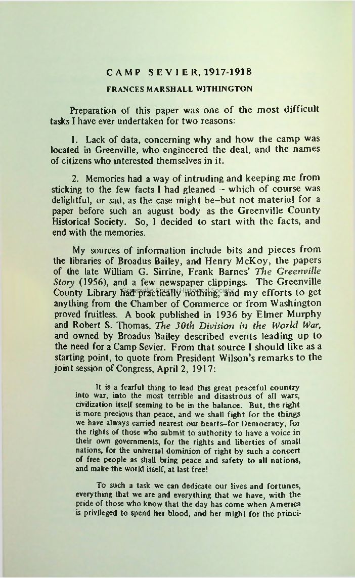 Camp Sevier, 1917-1918Entry/Object ID