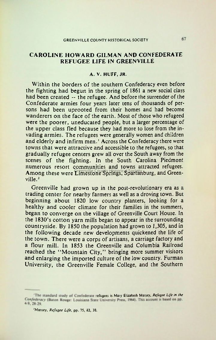 Caroline Howard Gilman and Confederate Refugee Life in GreenvileEntry/Object ID