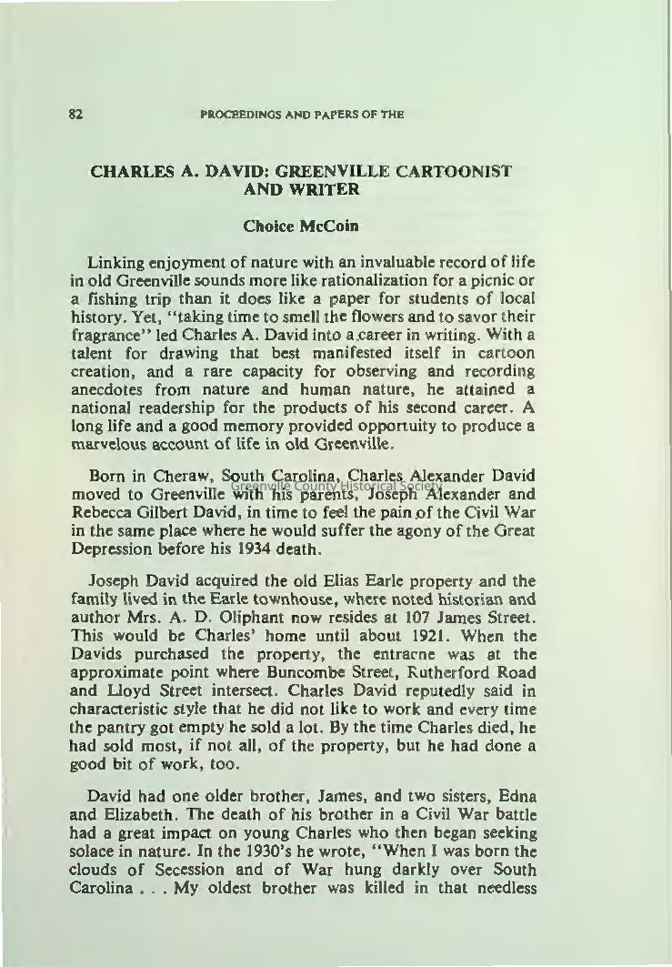 Charles A. David: Greenville Cartoonist and WriterEntry/Object ID