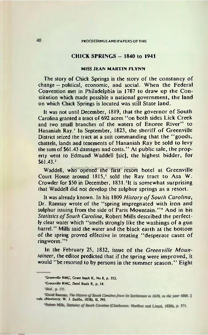 Chick Springs, 1840 - 1941Entry/Object ID