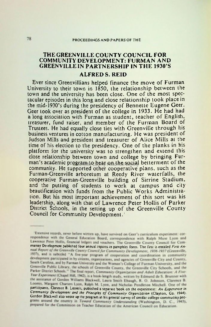 Greenville County Council for Community Development: Furman and Greenville in Partnership in the 1930sEntry/Object ID