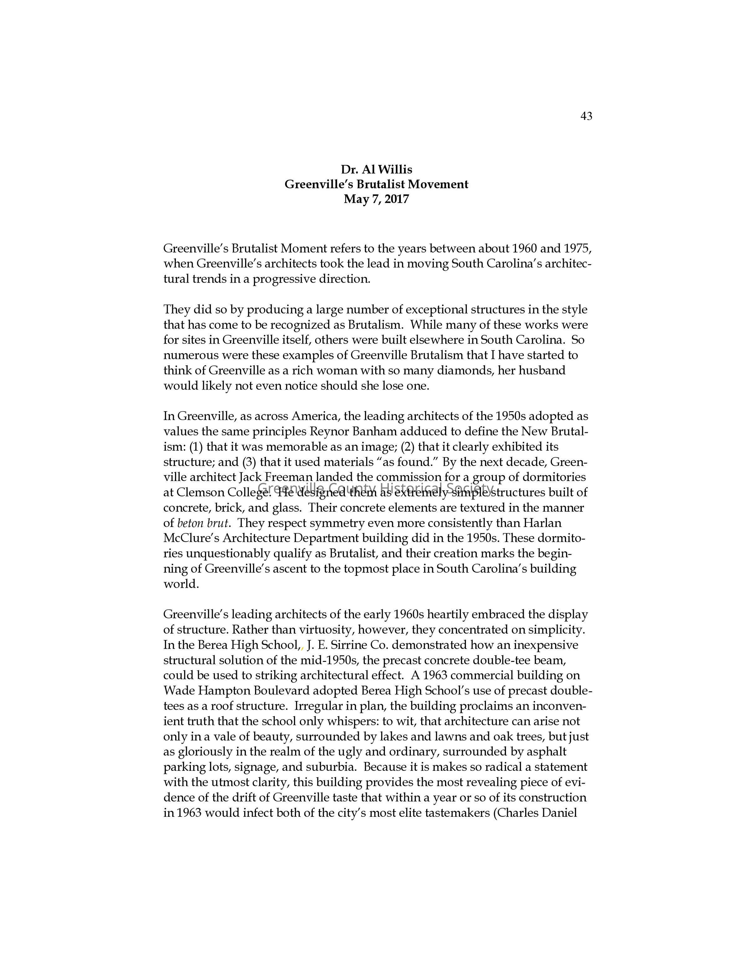 Greenville's Bruitalist MovementEntry/Object ID