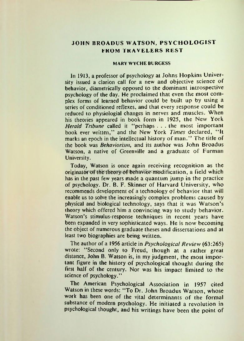 John Broadus Watson, Psychologist from Travelers RestEntry/Object ID