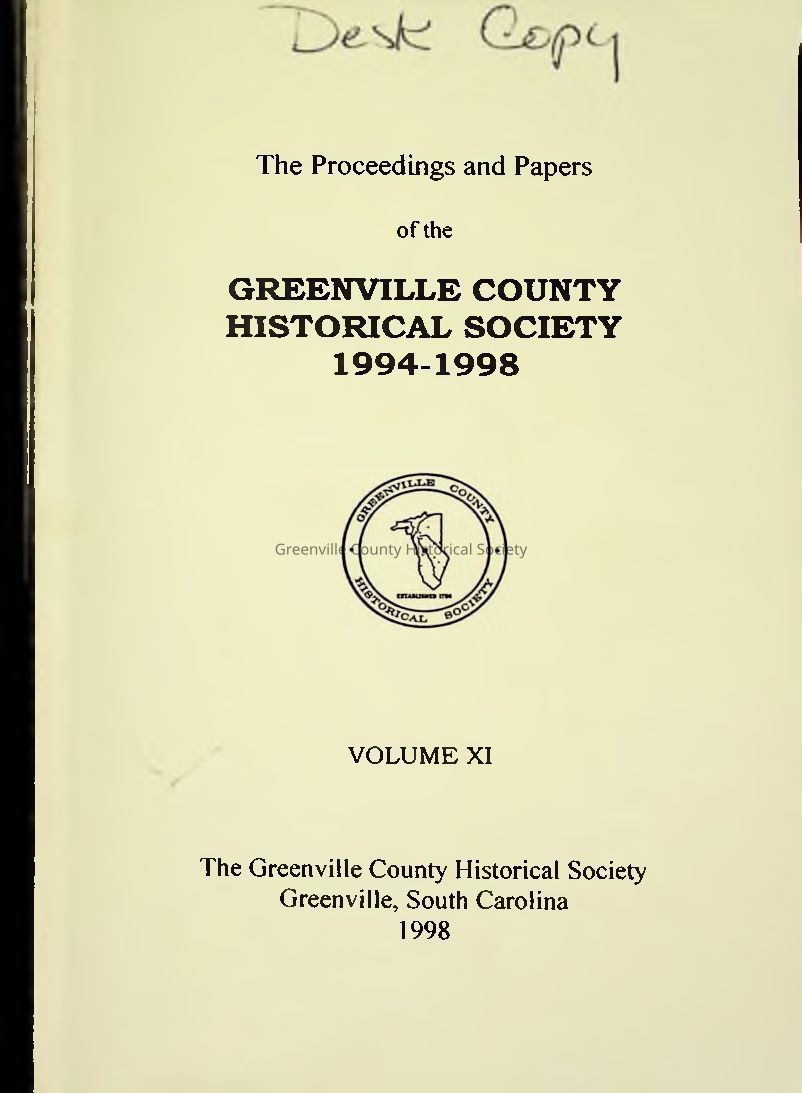 Volume XI of The Proceedings and Papers of the Greenville County Historical Society (1994–1998) presents a rich compilation of historical research and reflections on Greenville County, South Carolina. Edited by Jeffrey R. Willis, this volume includes society meeting notes, memorial tributes, and scholarly papers. Topics range from broadcasting history and Civil War-era life to prominent local figures like Henry P. Hammett and Micah Jenkins. The volume highlights the growth of the textile industry, historic preservation efforts, and the development of radio in Greenville. It serves as a testament to the Society’s dedication to preserving and sharing the county’s diverse and evolving heritage.Collection