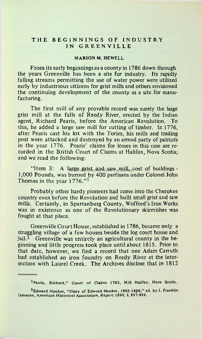 The Beginnings of Industry in GreenvilleEntry/Object ID