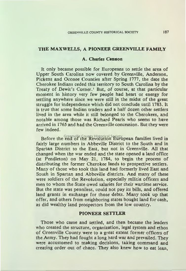 The Maxwells, A Pioneer Greenville FamilyEntry/Object ID