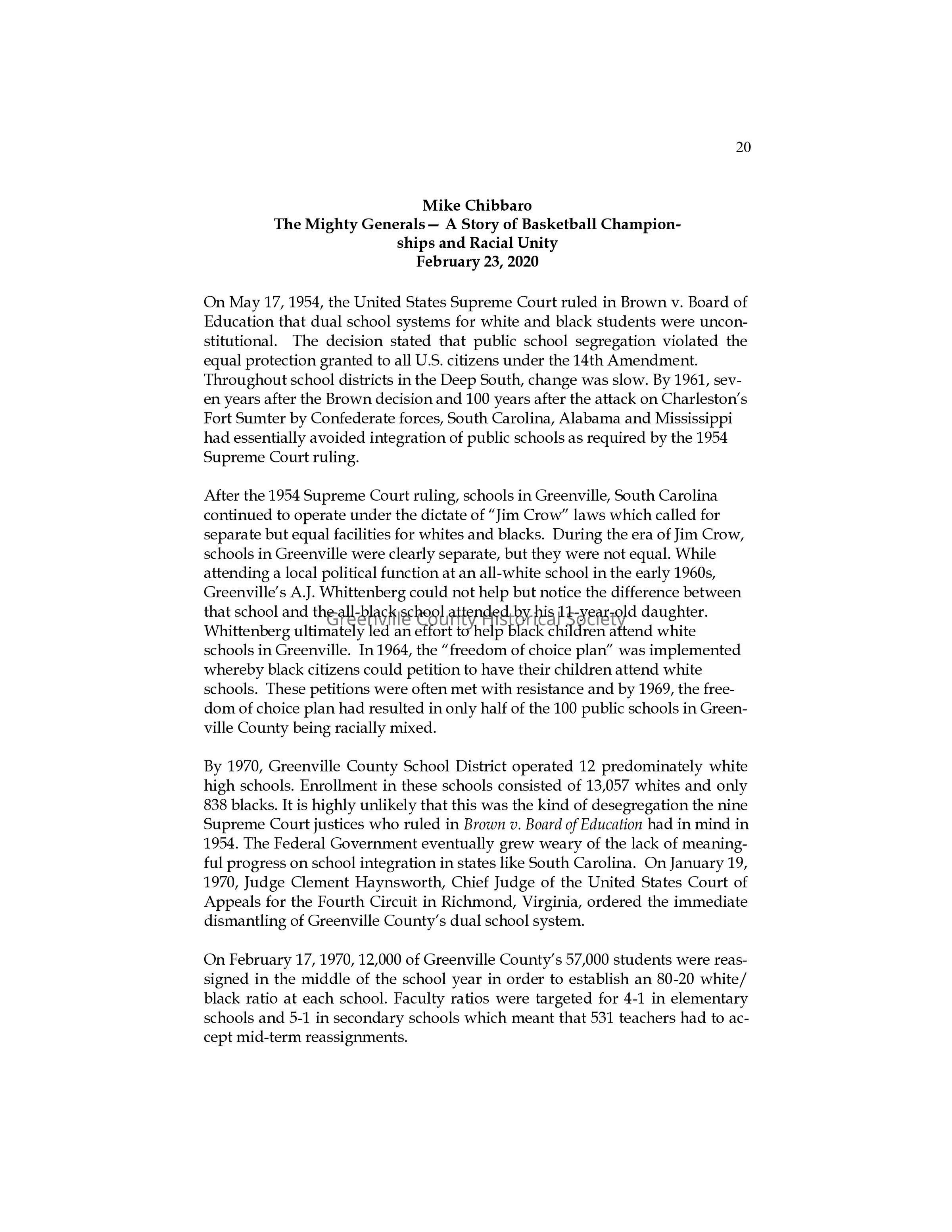 In 1970, amid federally mandated desegregation in Greenville, SC, 300 Black students from closed schools were transferred to Wade Hampton High, a predominantly white school named after a Confederate general. Integration was peaceful and symbolized by a handshake between student body presidents, later featured in Newsweek. The school’s basketball team, the “Mighty Generals,” became a symbol of racial unity after adding five Black players, including standout Clyde Mayes. The newly integrated team won back-to-back state championships in 1970 and 1971. Basketball became a bridge across racial divides, teaching players they were more alike than different and uniting the community.Collection