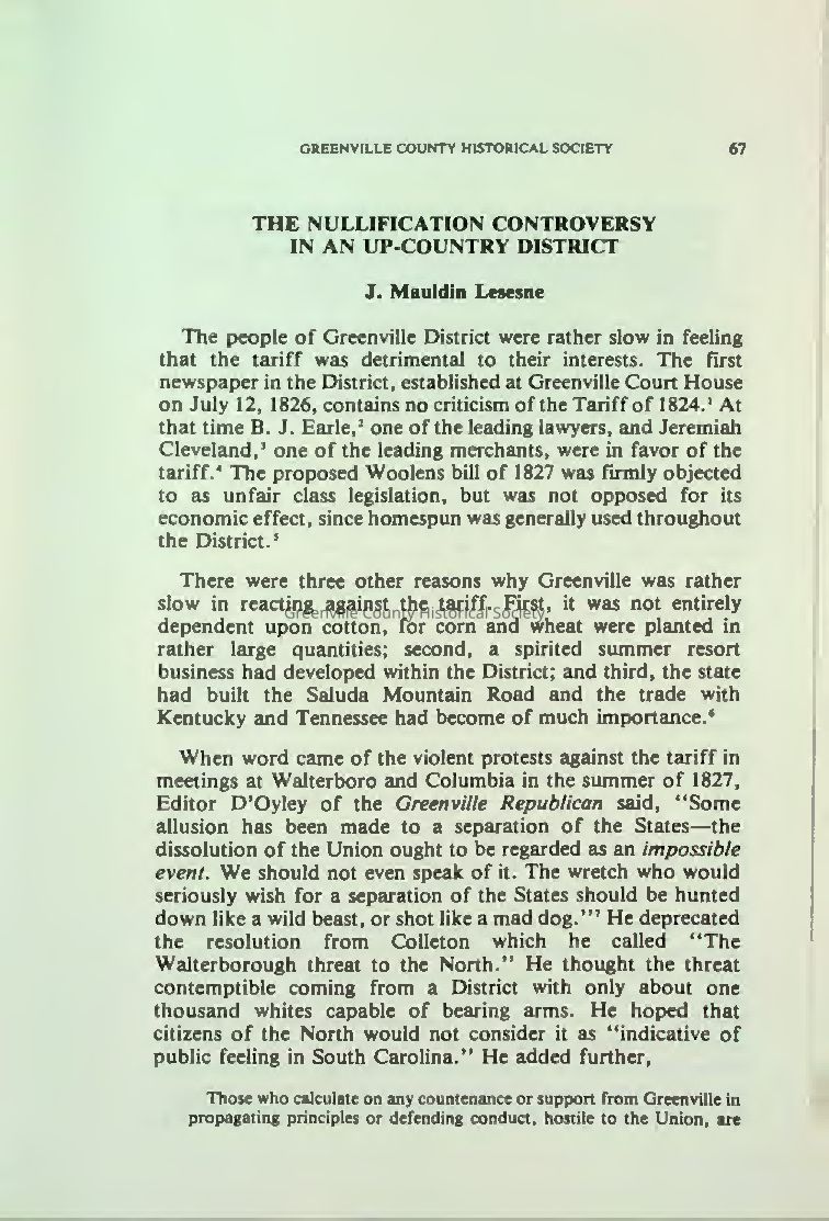 The Nullification Controversy in an Up-Country DistrictEntry/Object ID