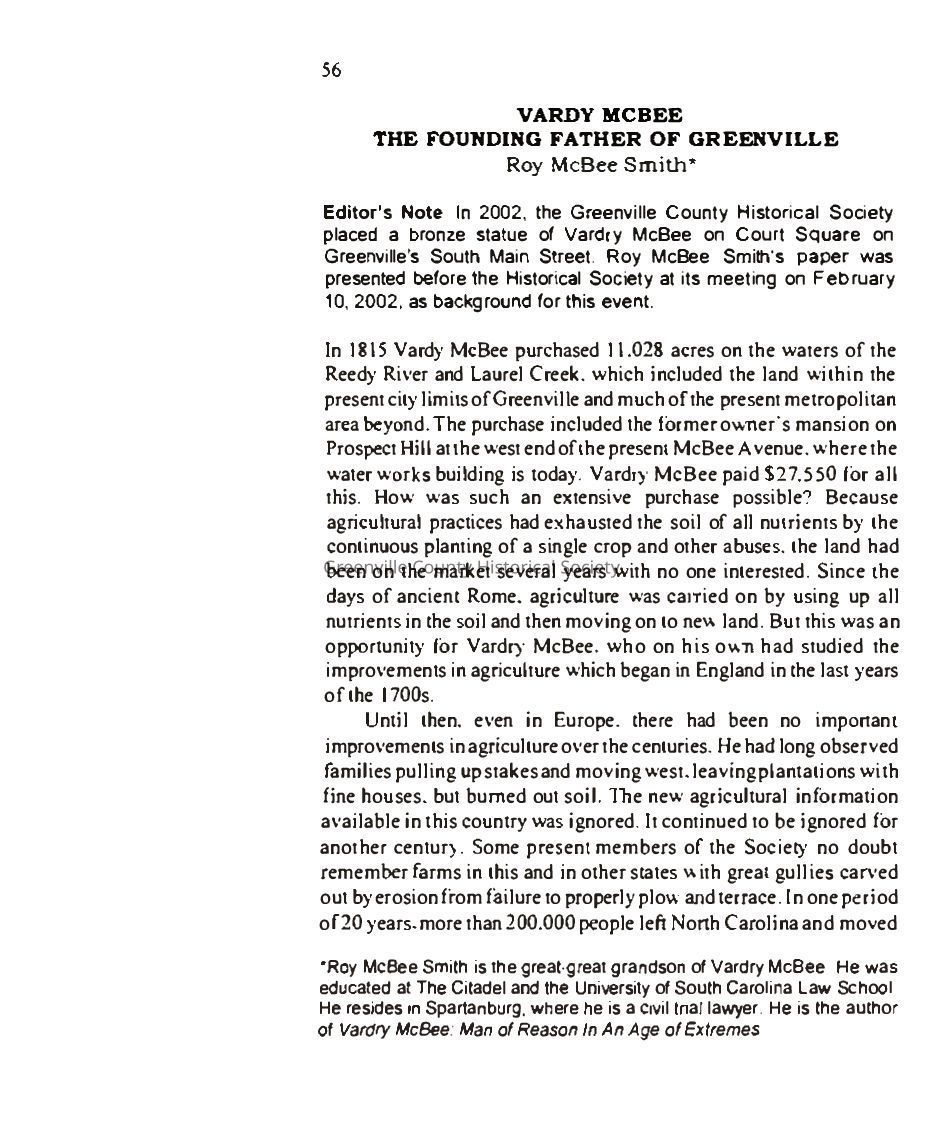 Vardry McBee: The Founding Father of GreenvilleEntry/Object ID