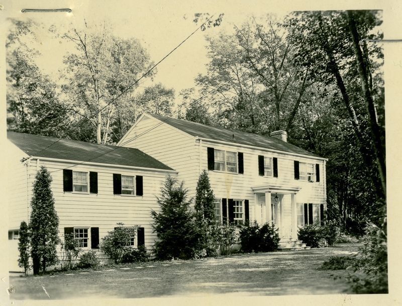 Two story house built in 1961 with a two door garage viewed from its driveway.