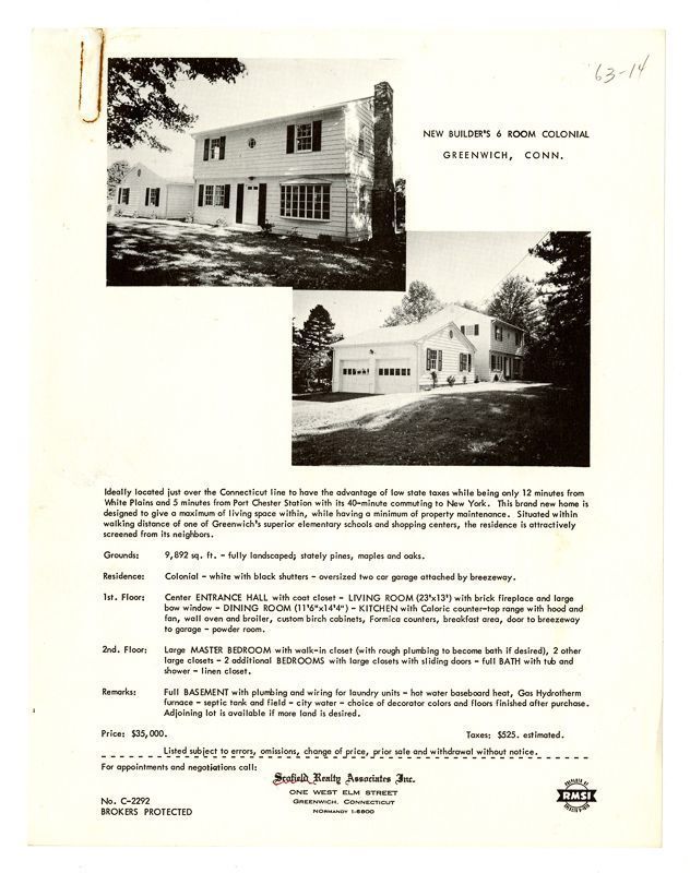 Ad with two images of the house and its garage. Ad also has information on the house's location, rooms, and price.Collection