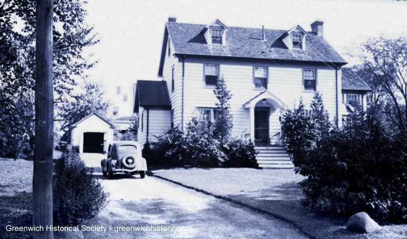 Two story clapboard home with two dormers in the roof at 65 Indian Field Road, corner of Osceola Drive. Rear view of a car is visable in the side driveway leading to a detached garage.Collection