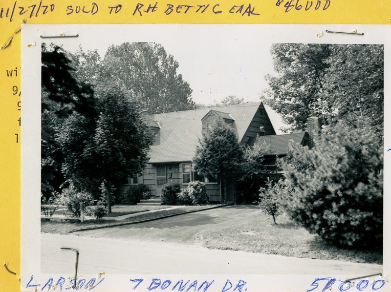 Cape Cod house with two small dormers and shingle siding built in 1954 viewed from the street.