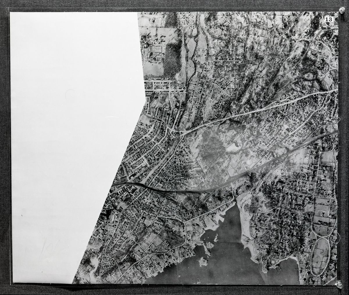 Negatives of an aerial photographic map of Greenwich originally made for the Board of Selectman in 1929 (the flight was undertaken in January of 1928).Collection