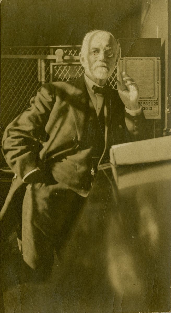 Alfred Rundle in the office of Greenwich Savings Bank.