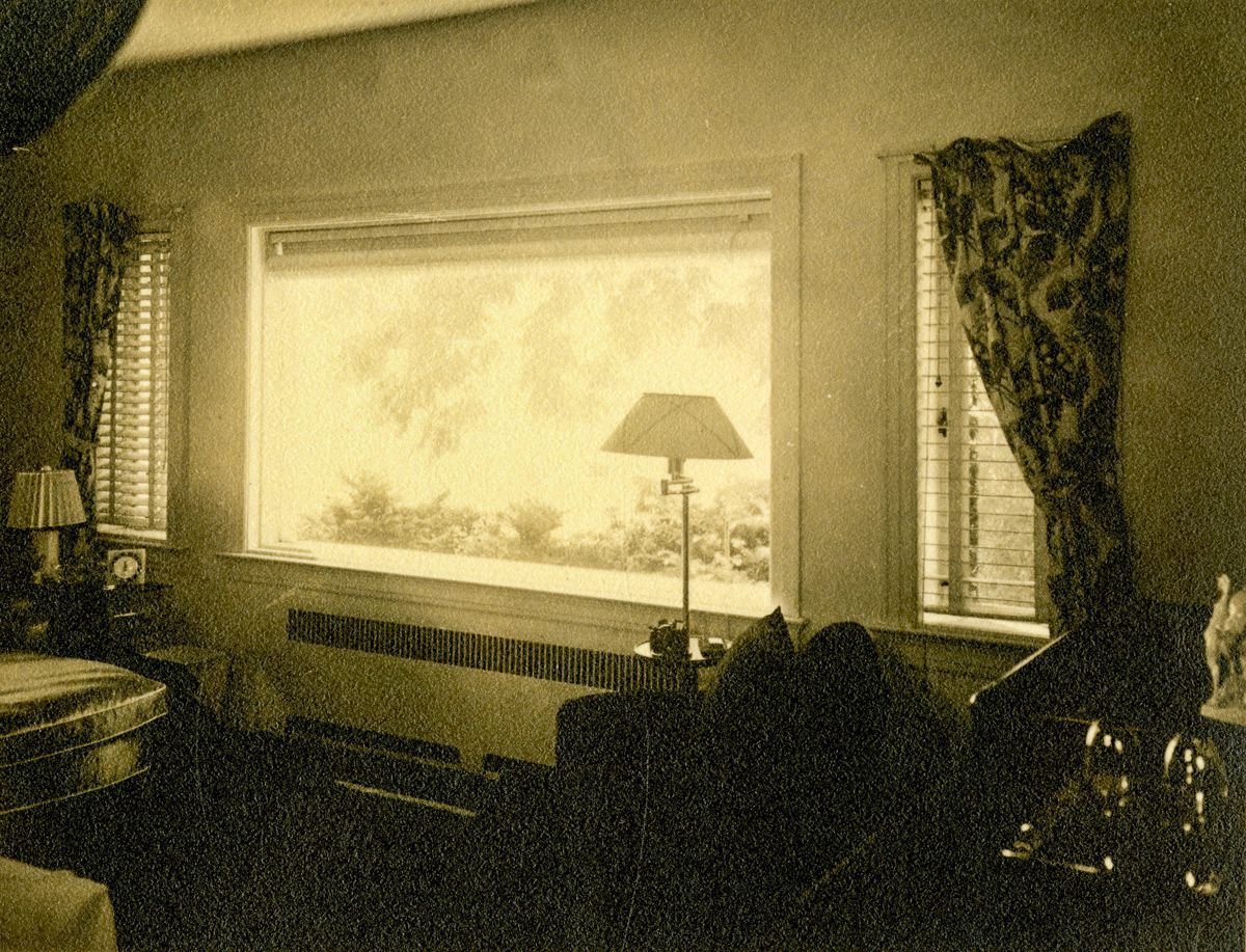 View of a room looking towards a window.