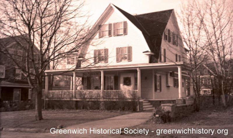 Three story home with a full width porch and drive-through portico in the front and a gambrel shaped, two story dormer in the front and side.Collection