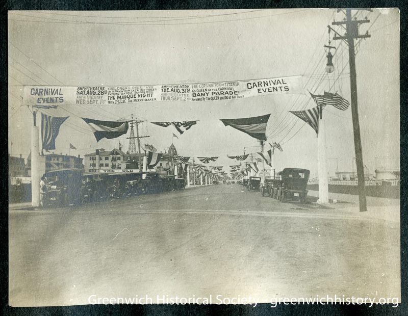 Street scene with carnival events banner, likely Jersey Shore