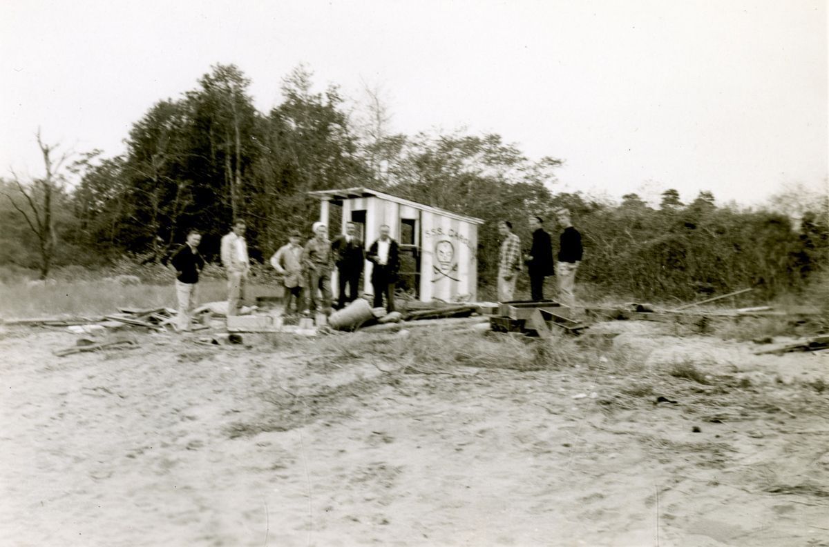 The boat "Caroline" beached on Calf Island off the coast of Byram; the boat was likely beached in a hurricane.