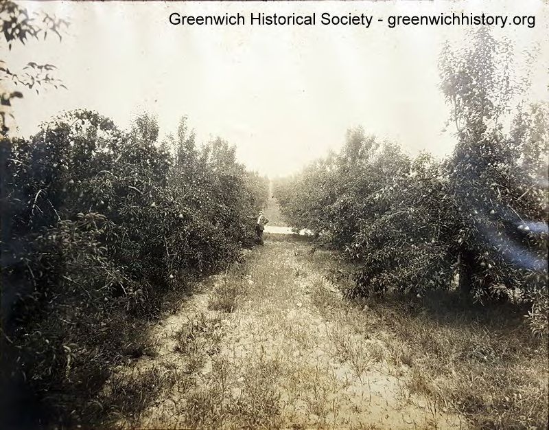 60-acre pear orchard at Conyers Manor in 1926. The man in the photograph is George Albert Drew, manager of Conyers Manor Farm.