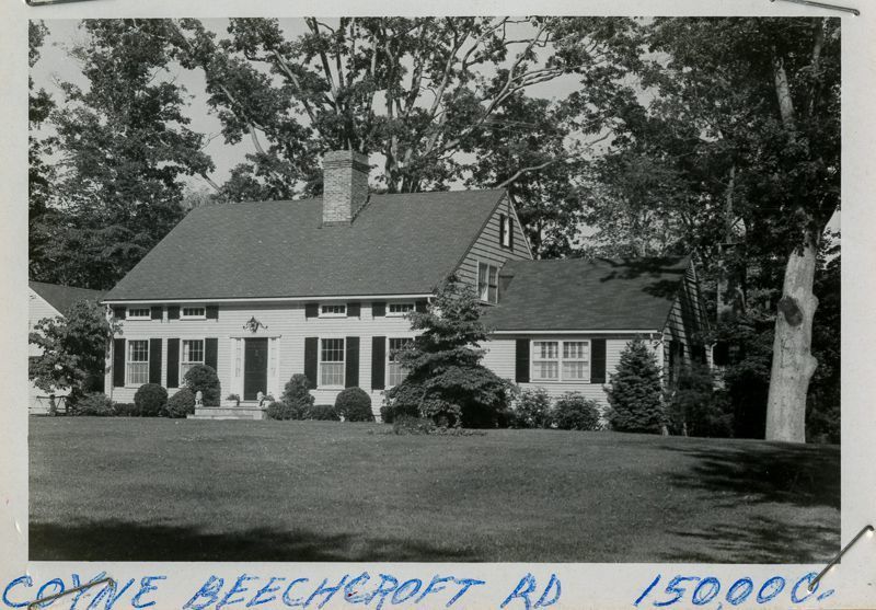 Colonial-style house built around 1960 viewed from its lawn.