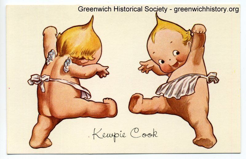 A cartoon image of a young boy, with wings and blond hair, wearing a white apron. This card is number 5 in a series of 12.Collection