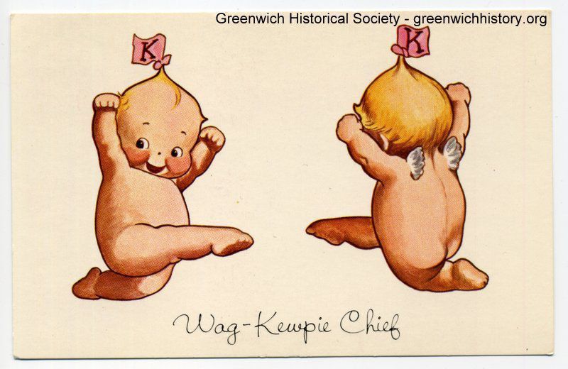 A cartoon image of a young boy, with wings and blond hair, wearing a pink ribbon in his hair that has the letter "K" on it. This card is number 2 in a series of 12.Collection