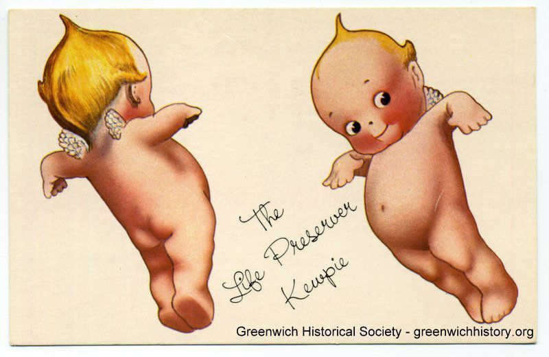 A cartoon image of a young boy, with wings and blond hair, puffing out his stomach. This card is number 9 in a series of 12.Collection