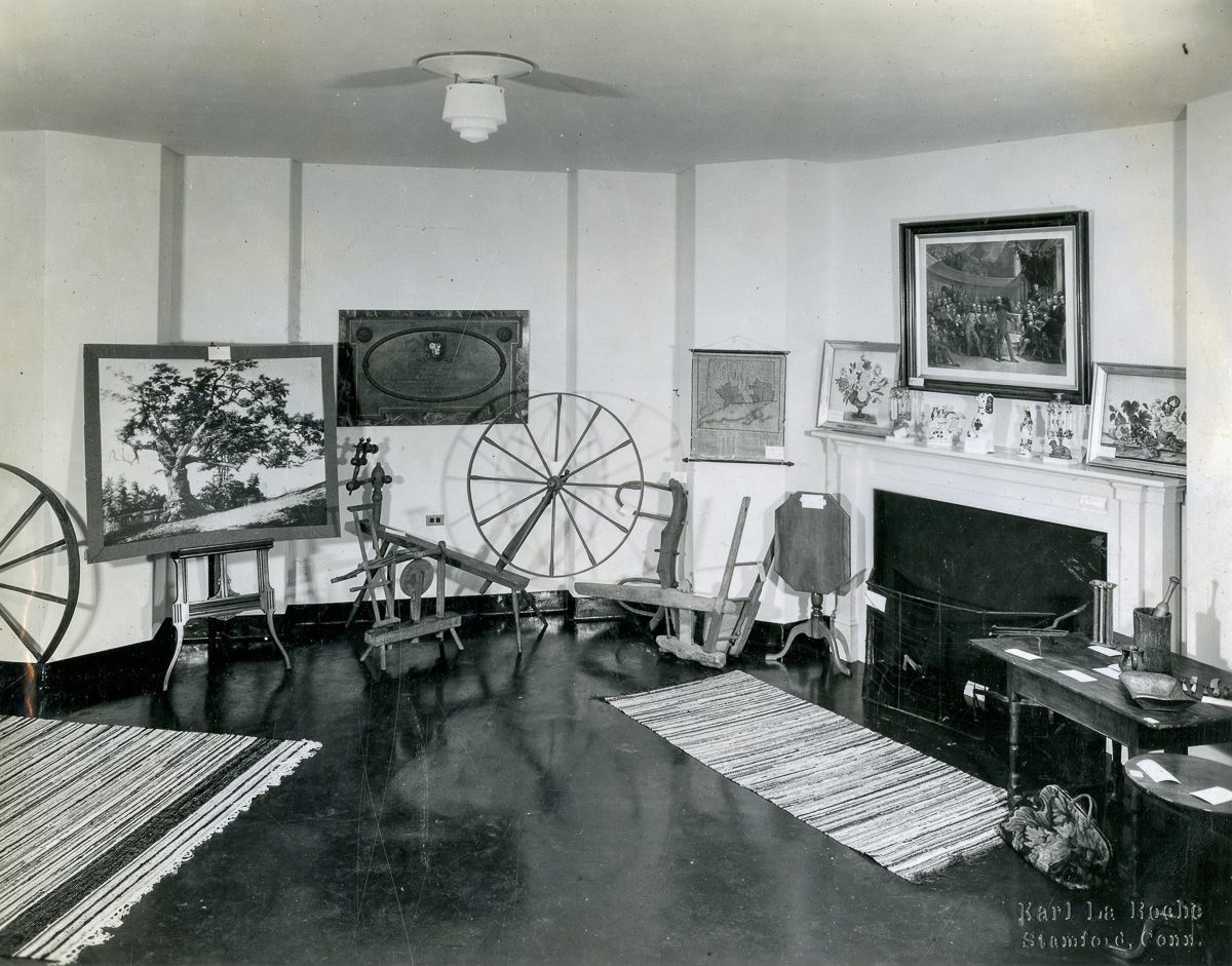 The main display room of the Greenwich Historical Society in the Perrot Memorial Library shortly after the Historical Society was founded.Collection