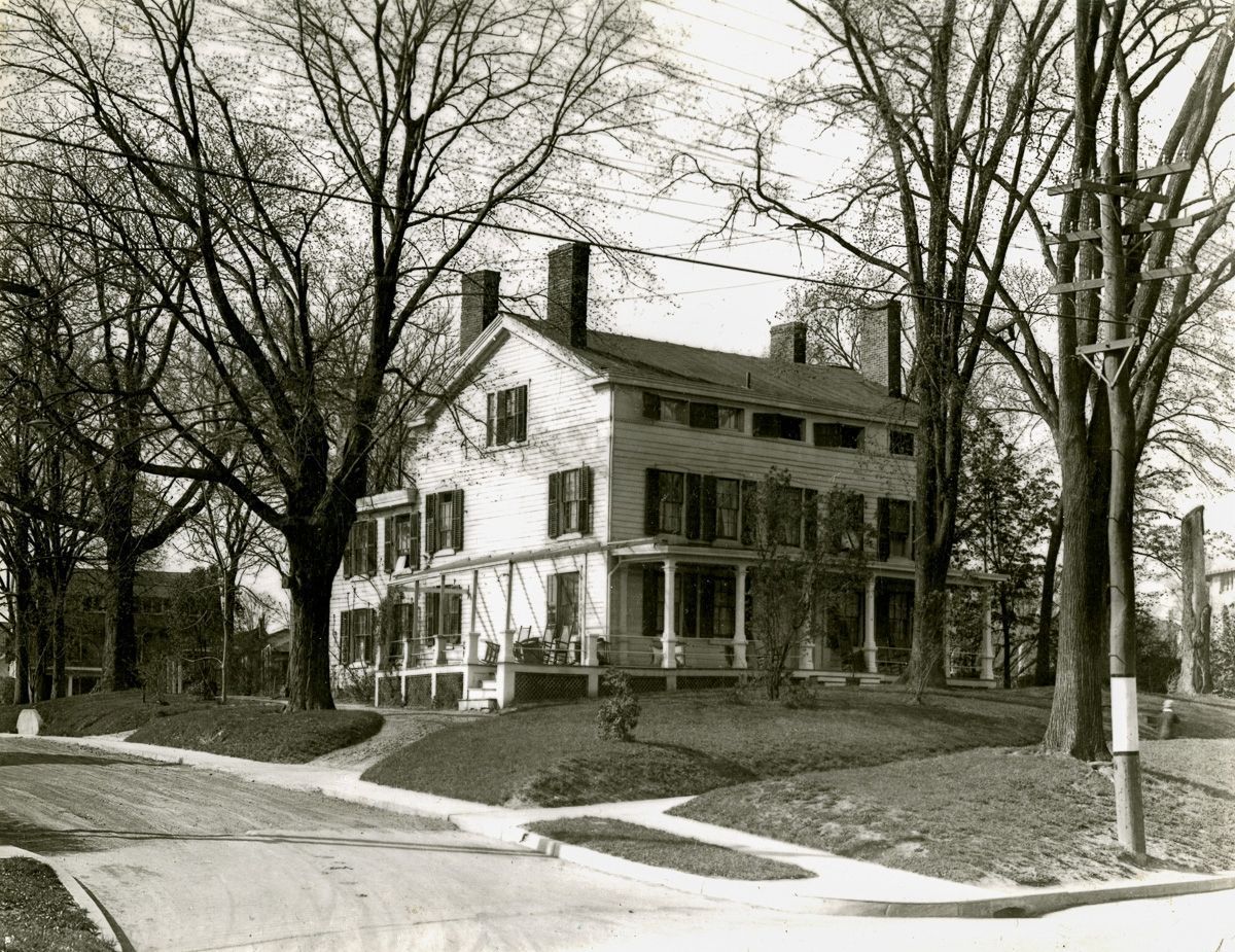 A view of The Elms from East Putnam Avenue, facing down Maher Avenue. The Elms inn was built circa 1780 and housed Miss Graham's Seminary for Young Ladies (1833-1840), William Benson Sherwood School (1840-1849), and Mr. Peck's School (1860s), after which it became a boarding house ran by Edward Lyon Holley known as "The Elms" with additional cottages in the back. The building was torn down in 1941.Collection