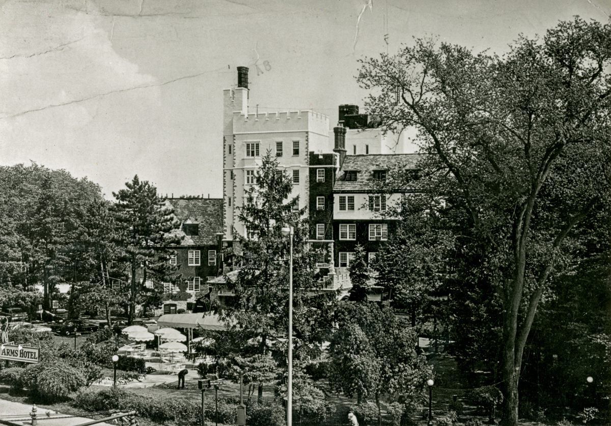 A view of the front of the Pickwick Arms hotel from a building across the street on the Post Road. The Pickwick Arms opened in 1920 and was closed in 1972.Collection