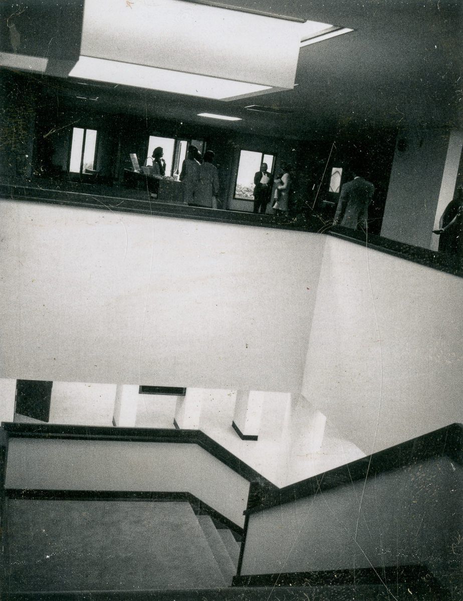 A view from the stairwell of the lobby and first floor of the Greenwich Library's building on Greenwich Avenue.Collection