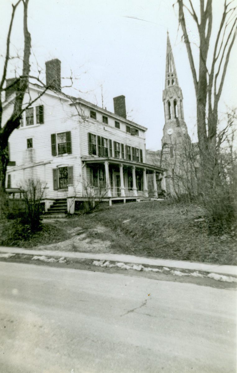 A view of The Elms on January 19th 1941, the day before its demolishing. The Elms inn was built circa 1780 and housed Miss Graham's Seminary for Young Ladies (1833-1840), William Benson Sherwood School (1840-1849), and Mr. Peck's School (1860s), after which it became a boarding house ran by Edward Lyon Holley known as "The Elms" with additional cottages in the back. The building was torn down in 1941.Collection