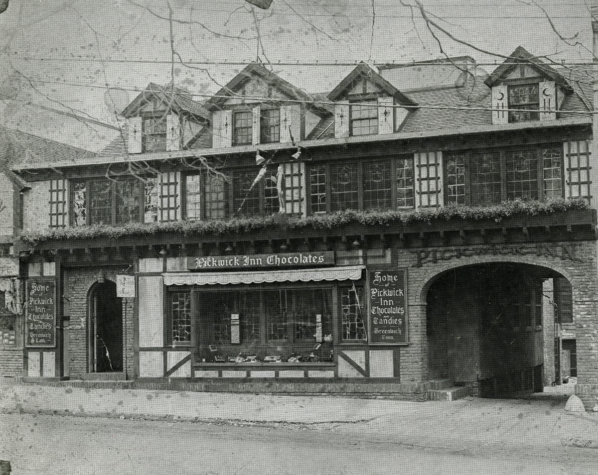 A view of the storefront of the Pickwick Inn and the Pickwick Inn Candy Company on the Post Road.Collection