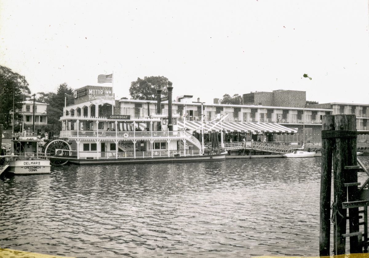 The 'Showboat' moored outside the Showboat Motor Inn.