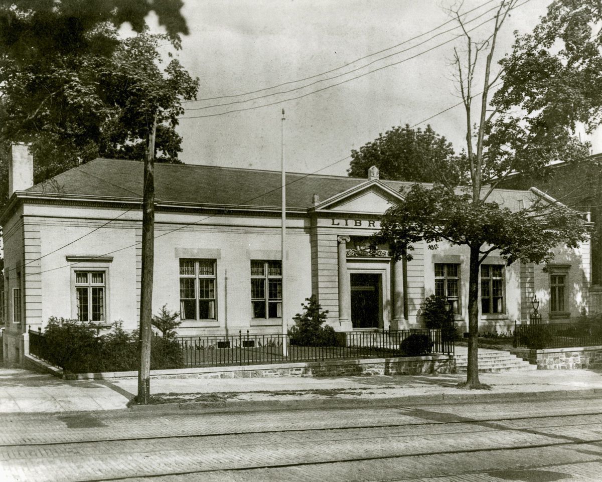 The front of the Greenwich Library at its location at 205 Greenwich Avenue.