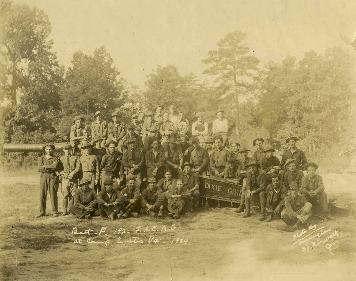 Members of the Connecticut National Guard's first gun section of Battery 'F' posing with the artillery piece "Dixie Girl" on September 1st, 1924 at Fort Eustis, Virginia.Collection