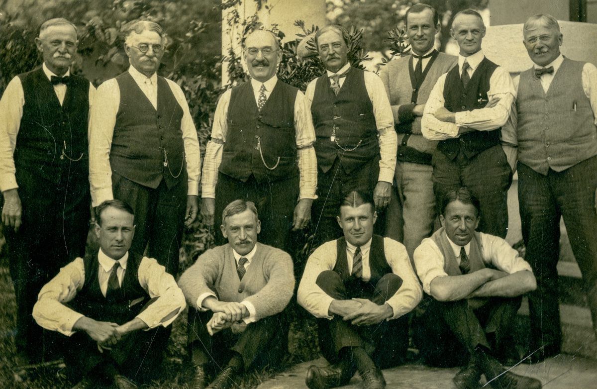 Members of the Masonic Order, Acacia Lodge # 85, at the home of James Green Wilson (fourth from left, back row)in Gulfport, Florida.Collection