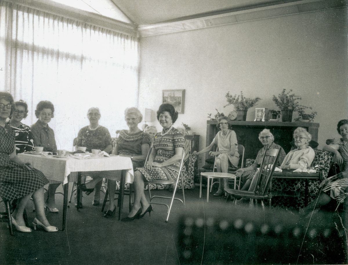 Members of the Soroptimist Club hostessing a tea in Quarry Knoll's community room as part of the club's observance of Senior Citizen's month.Collection