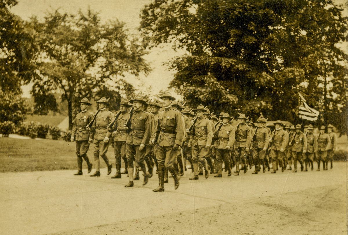 Men in the Riverside reservists marching somewhere in Greenwich during World War One.Collection