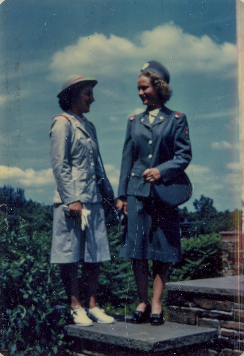 Two women of the cadet nurse corp., one in summer uniform and one in winter uniform, during World War Two.Collection