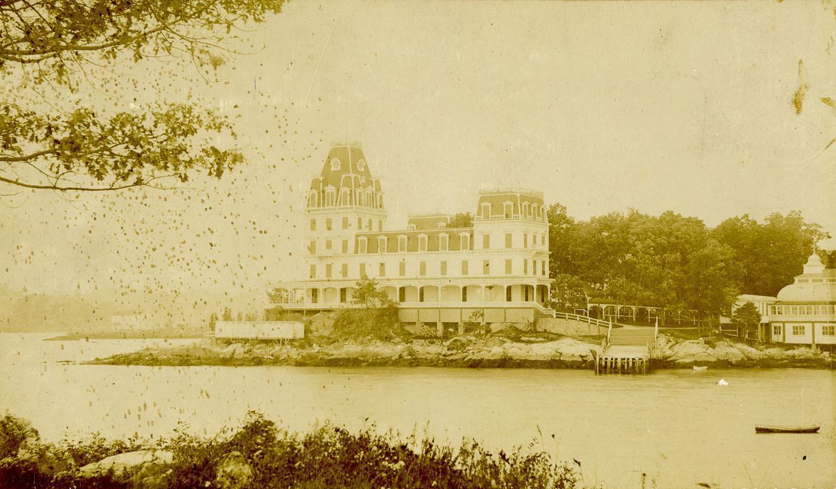 A view of the Indian Harbor Hotel, from Mead Point, looking west towards Greenwich Harbor and Belle Haven.Collection