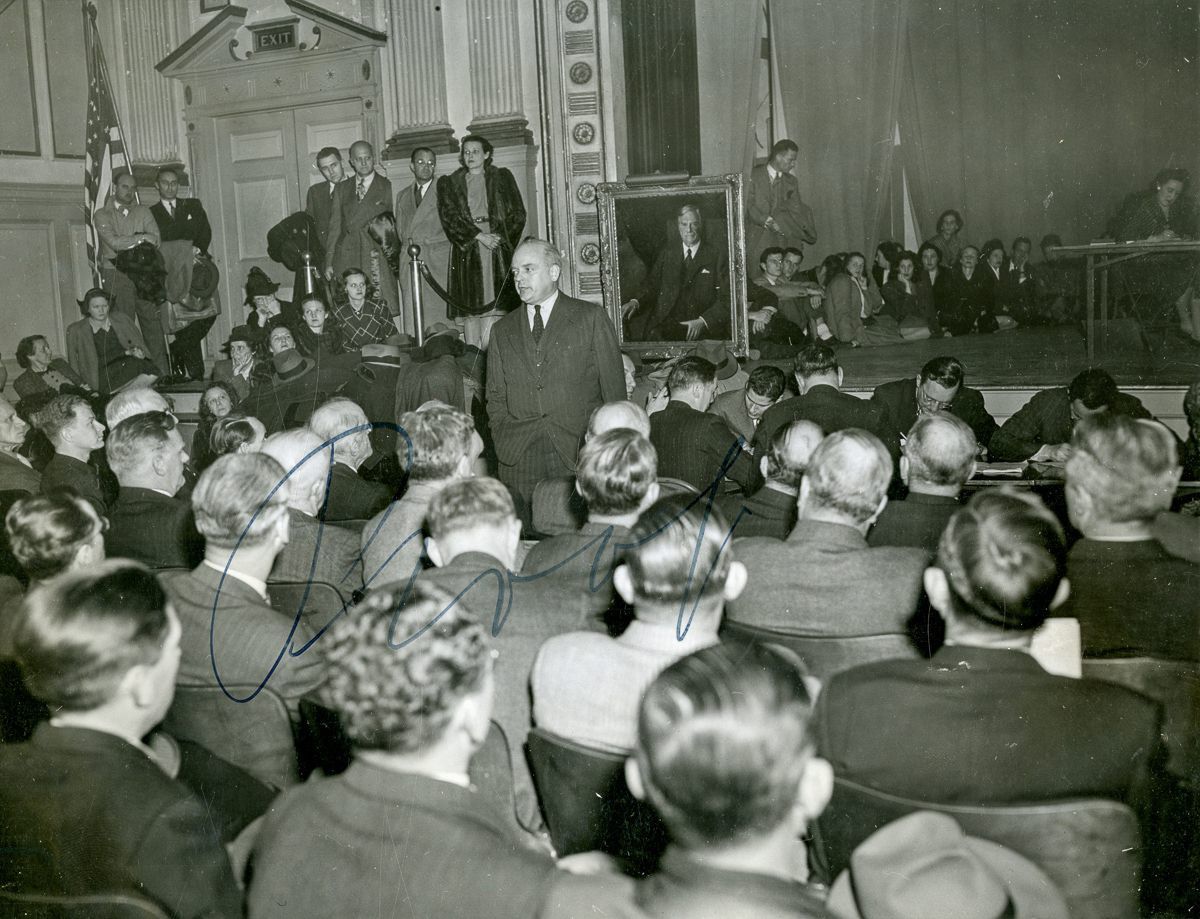 Wilkie Bushby giving a speech during a town meeting that was debating the proposal of the UN organization building their headquarters in Greenwich.Collection