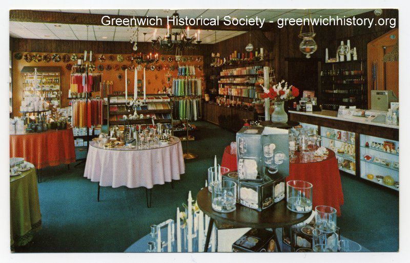 The inside of a store that sells unusual candles and gifts from all over the world. There are multiple tables with colorful table cloths and items stationed on the tables. The shelves are full of colorful candles and other objects hang on the walls. To the right is a counter with a cash register.Collection