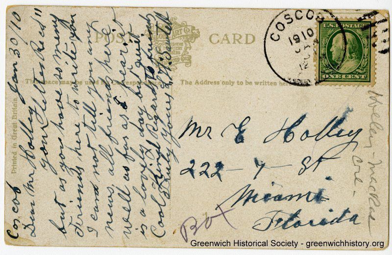Residence of Ernest Thompson Seton, Cos Cob, Conn. (Back of postcard)